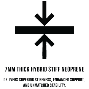 Features a 7mm thick hybrid neoprene body with extremely stiff elastic velcro straps for MAXIMUM stability and support.