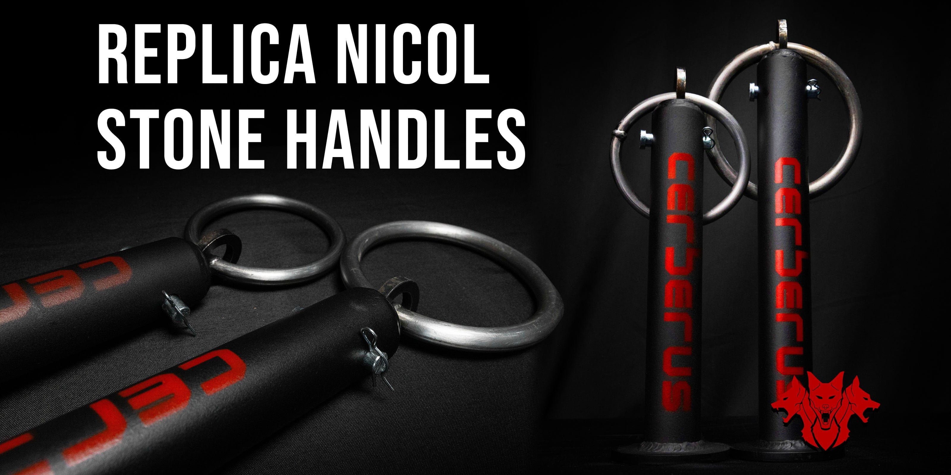 Official Approved Replica made in conjunction with the man himself Brett Nicol. CERBERUS Nicol Walking Stone Handles are the official replicas of the ring handles and pick-up heights of the real Nicol Walking Stones. They are not just standard circular shapes they have been made as close as possible to the two different handle shapes on the real stones.